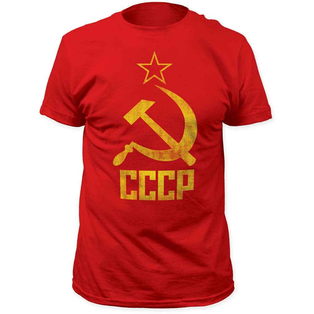 Rock on in this cool hammer and sickle t-shirt from Impact Merchandise! The t-shirt print on the front is inspired by the former flag of the USSR. The distressed print is printed on a red 100% cotton t-shirt.