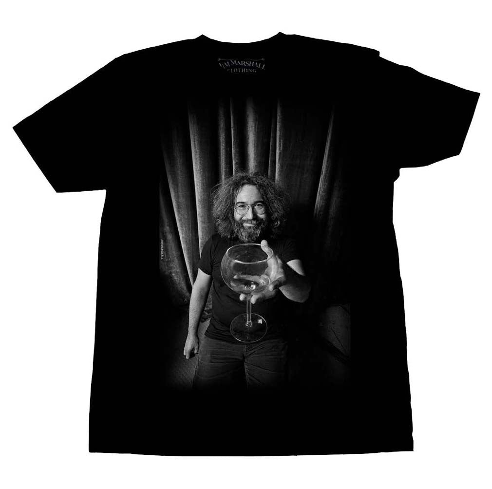 Officially licensed Jerry Garcia t-shirt featuring a imagery from Rock and Roll Hall of Fame photographer, Jim Marshall. Men's standard fit, 100% cotton t-shirt. Black. Manufactured by Jim Marshall Clothing.