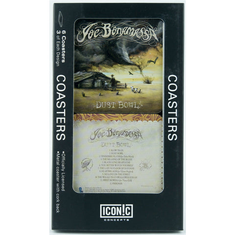 Keep the bar clean and looking great with this set of 6 officially licensed Joe Bonamassa drink coasters. The set features two different styles of coaster. Each set contains three coasters of each style. Each coaster is a high-quality aluminum wrapped coaster that is sure to last for years. Each coaster set is packaged in a great-looking aluminum box for storage when not in use. Officially licensed.